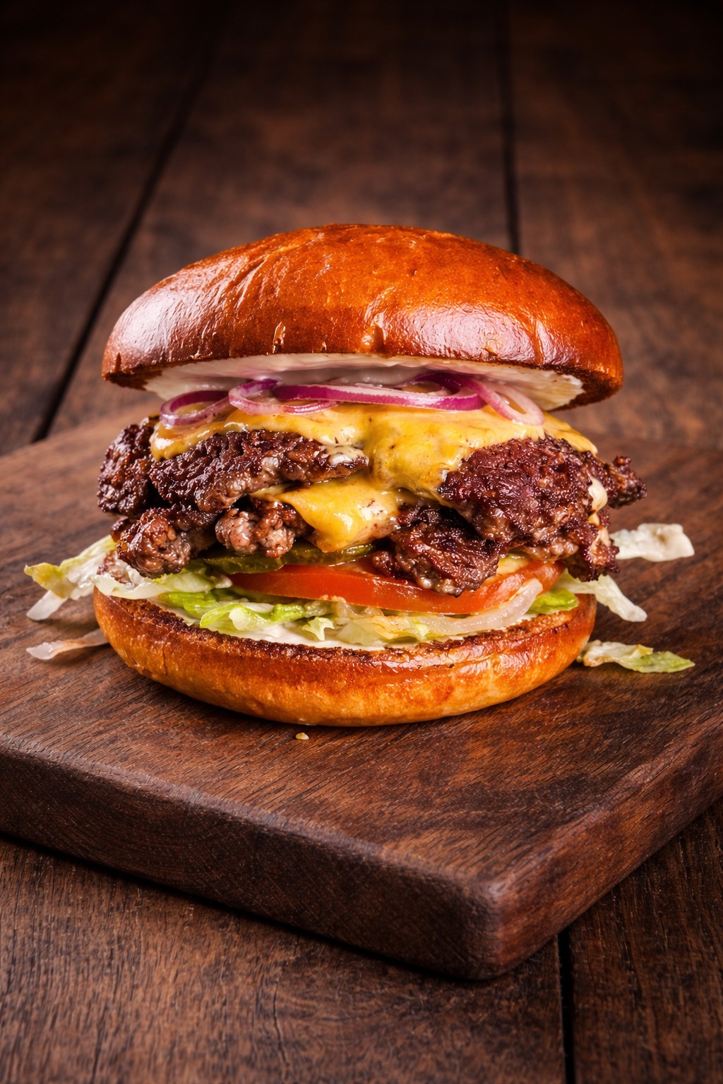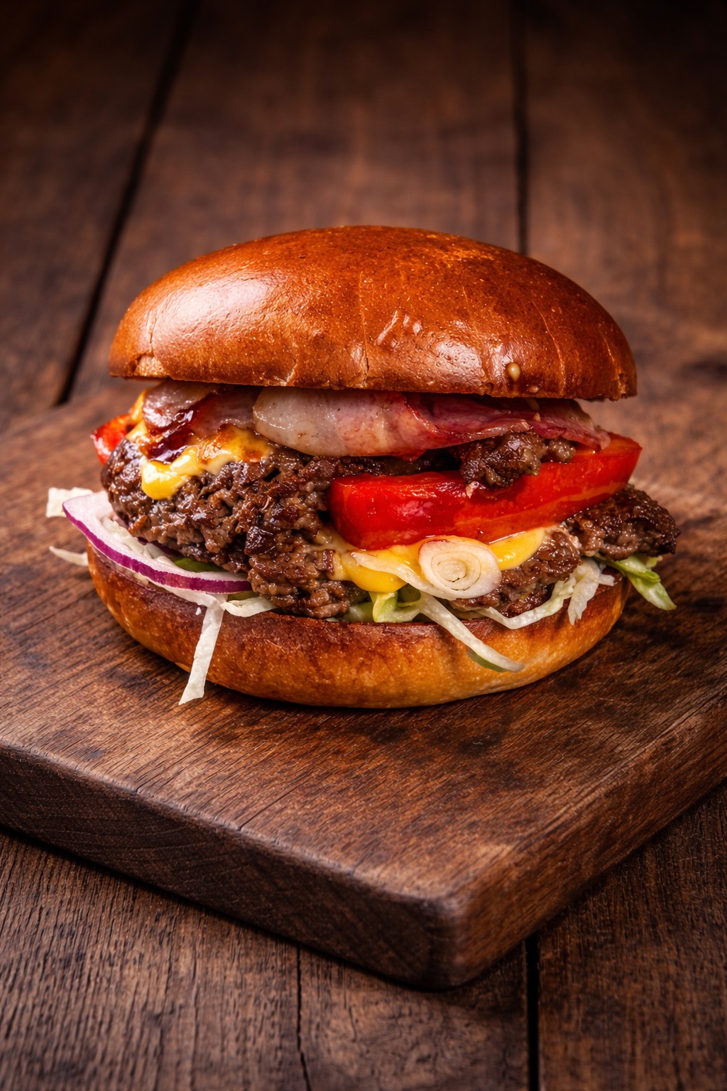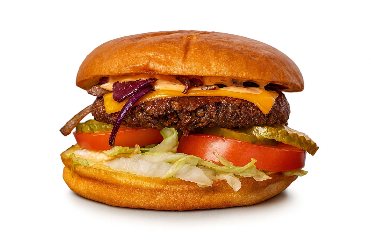 Nasze kotlety powstają ze starannie wyselekcjonowanej wołowiny, grillowanej tak, aby zachować maksimum smaku i soczystości. Do tego chrupiąca, świeża bułka, autorskie sosy i świeże dodatki, które podkręcają każdy kęs.