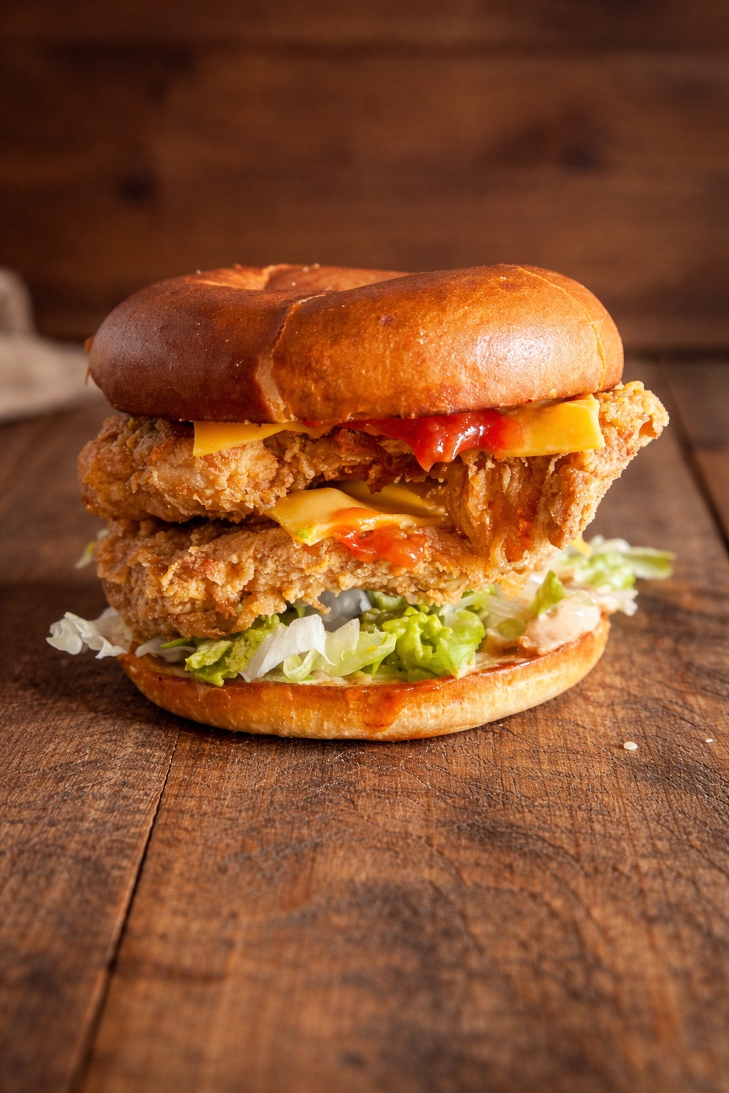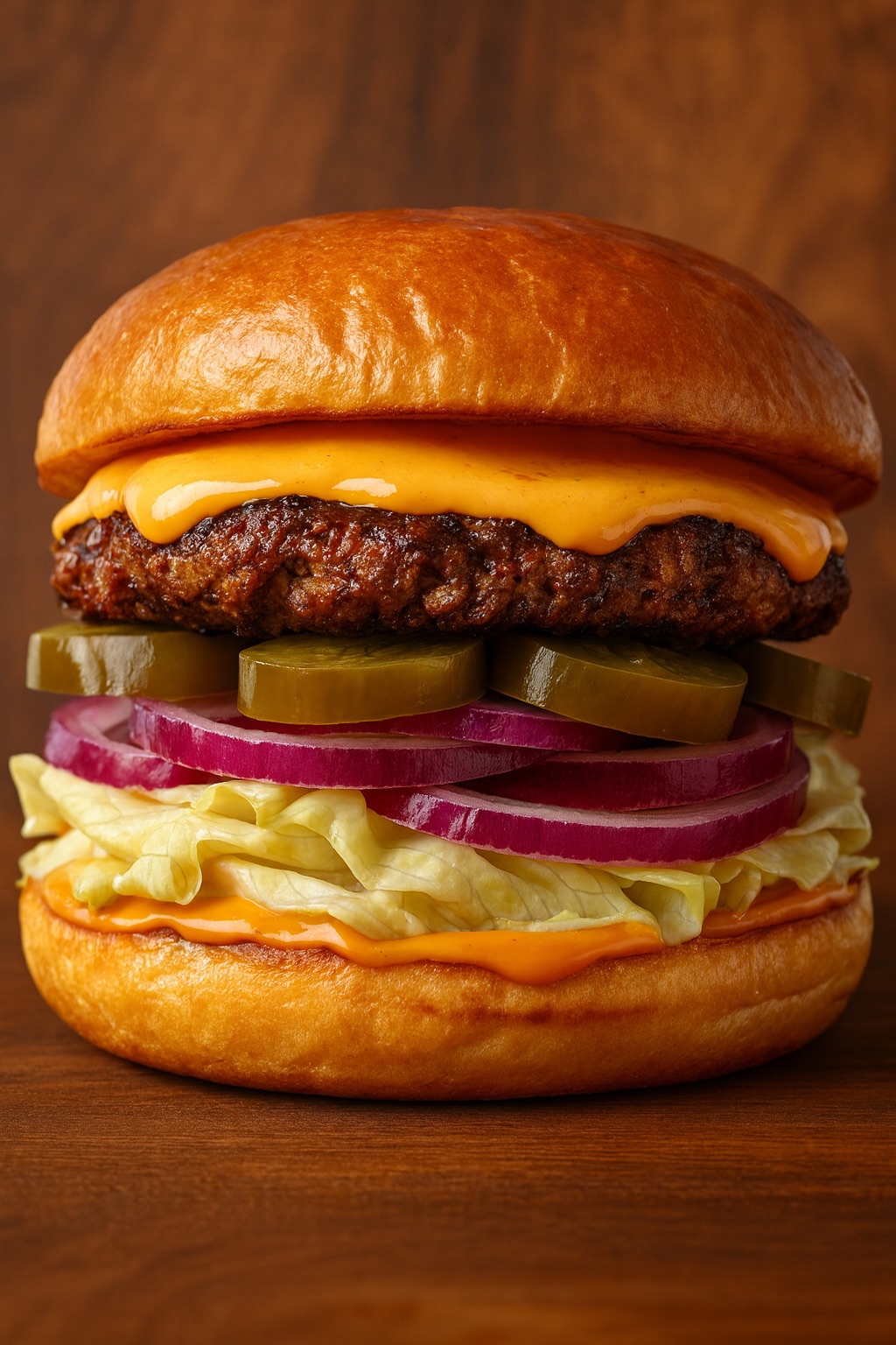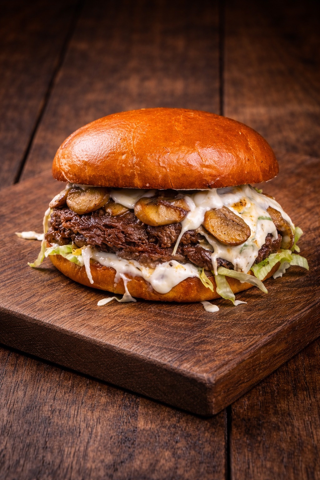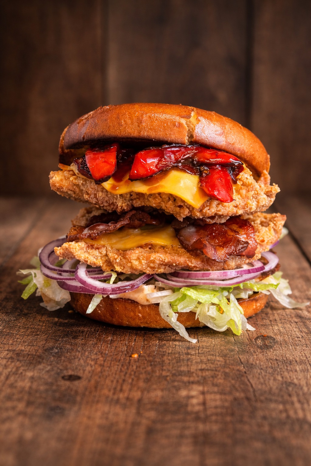 Nasze kotlety powstają ze starannie wyselekcjonowanej wołowiny, grillowanej tak, aby zachować maksimum smaku i soczystości. Do tego chrupiąca, świeża bułka, autorskie sosy i świeże dodatki, które podkręcają każdy kęs.